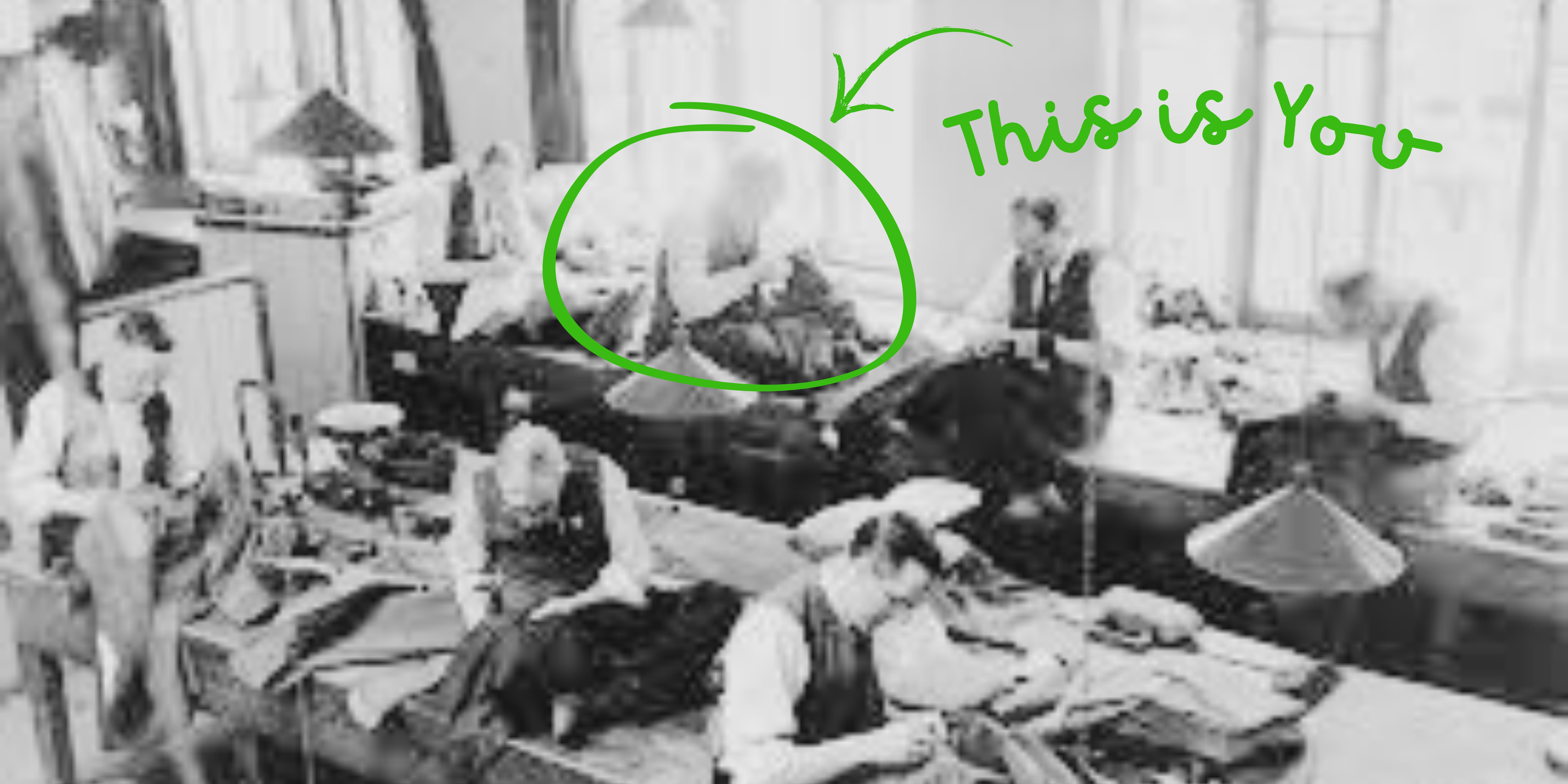 This narrative aspires to be tree-form and is already beginning to branch out into other times/spaces/voices. The trunk is a single image of the Tailor’s Lodge, a room with several long tables, and on ever table is a person holding a thread and a needle.